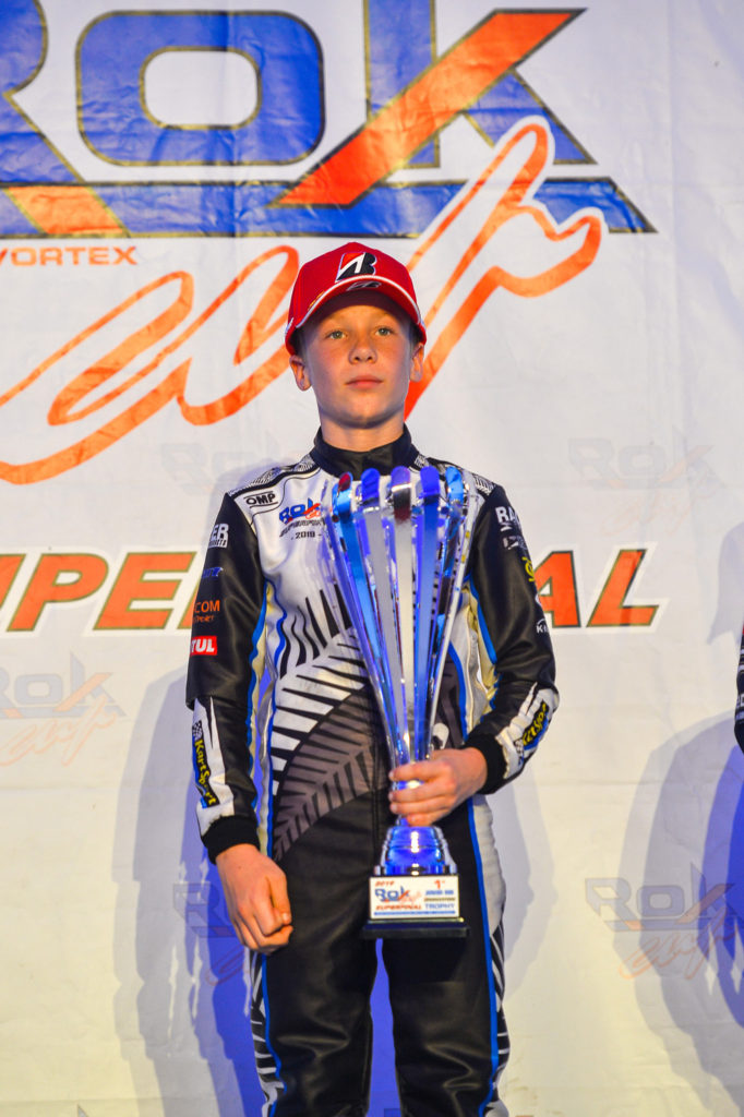 It was a case, meanwhile, of 3rd time lucky last year, the 14-year-old stepping up to the Junior ROK class and finishing in the top 3 in 3 of his heats before going on to win the class’s Bridgestone Trophy B main race outright,