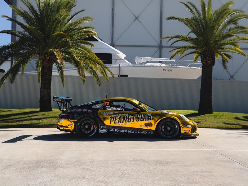 Team Porsche New Zealand (TPNZ) driver Zac Stichbury has unveiled a fresh Whittaker’s Chocolate ‘Peanut Slab’ themed livery for the TPNZ 991.2 GT3 Cup car racing in Porsche Sprint Challenge Australia 2023.
