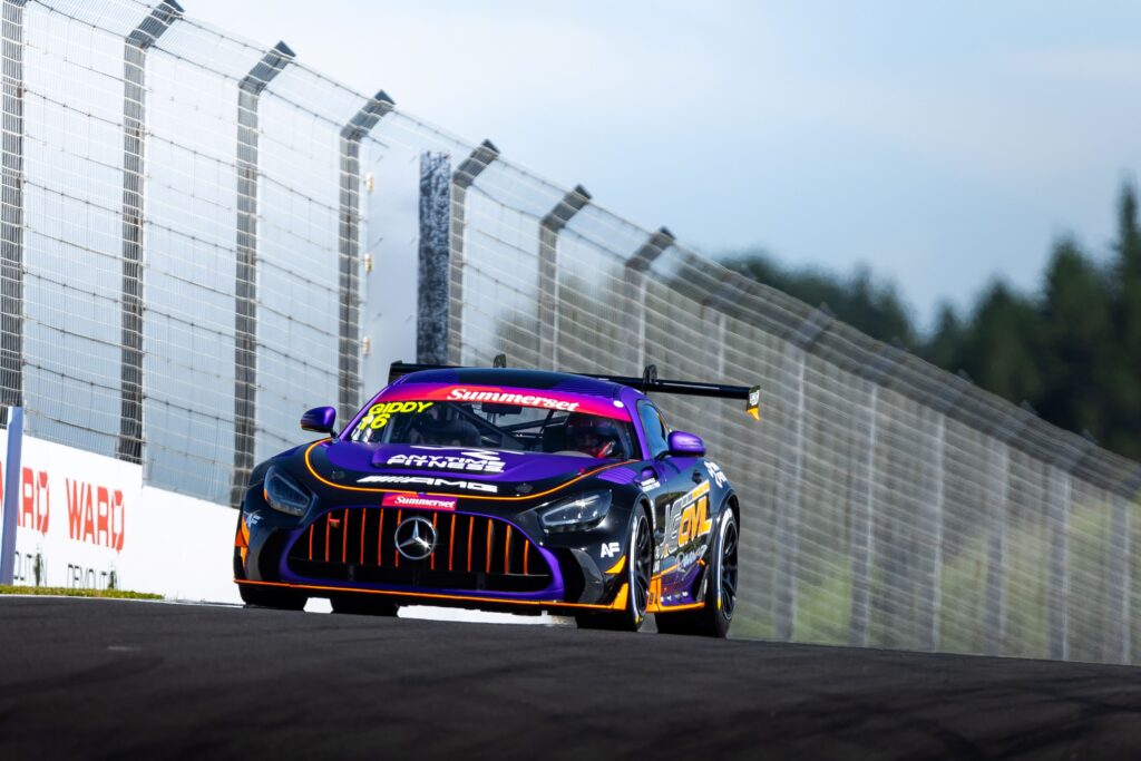 Jarrod Hughes and Summer Rintole finished third outright in their Mercedes while a last-lap overtake in the penultimate corner saw Jacob Lawrence steal a class win in the Am class.