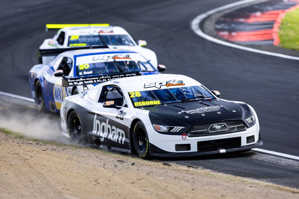 A brilliant start to the brand-new SP Tools TA2 New Zealand Championship saw a mega three-way fight for the win between Clay Osborne (Mustang), Dylan Grant (Dodge) and Caleb Byers (Camaro) that went right down to the wire.
