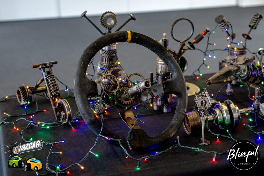 True to his word ahead of the first major long distance endurance race on his budget-friendly 2024 NaZCAR event calendar, the BadThurst 12 hour at Taupo International Motorsport Park over the Sat. Feb 24/Sun. Feb 25 weekend, the man behind it, Auckland-based motorsport event entrepreneur Dr Jacob Simonsen handed out as many of his distinctive, hand-made trophies to what he described as ‘deserving cases in the mid to the rear-of-field’ as he did to the squads who nominally won the event outright (Team DubDub) and the SsangYong Actyon ute-based Team Ghost Dog Racing squad which set the fastest lap.