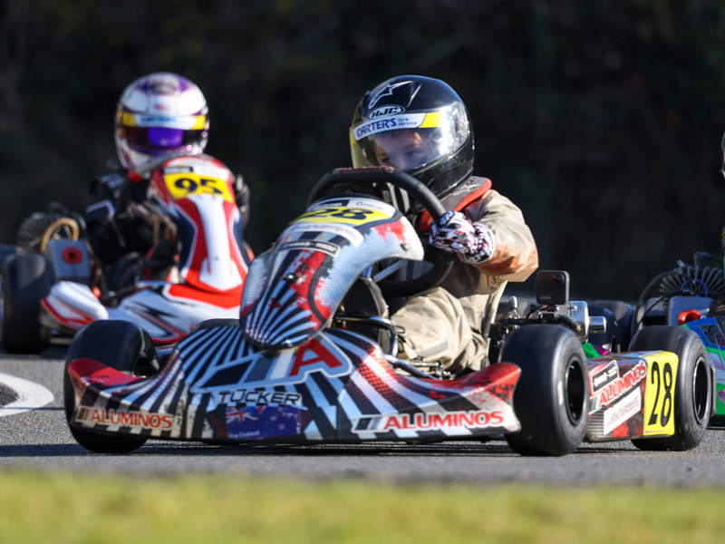 The early action in Cadet ROK saw Manawatu’s Tommy Hart top in qualifying and the first heat, while Tucker won the second heat off the front row of the grid. The pre-final went to Southland’s Nixon Cripps with stunning drive, pushing to the front four lap from the finish.