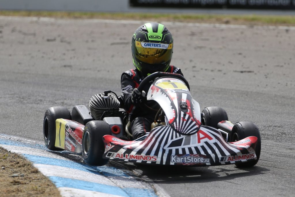 Thirteen-year-old Ollie Workman is the toast of his home Club, KartSport Nelson, after a dominant performance in the biggest class, 125cc Rotax Max Junior, at the Liquidaction 2021 South Island Sprint Championships contested over Labour Weekend at the club’s The Hits RWCA Raceway.