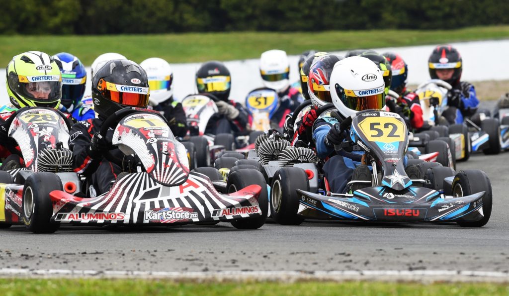 Could anyone challenge current National Cadet ROK champion Henry Fisher? The answer was no, with Fisher qualifying 0.223 seconds ahead of Nixon Cripps (Southland) and going on to win all the Cadet ROK races, including the final by 3.532 seconds from Cripps with Dunedin’s Jack McGrath third.