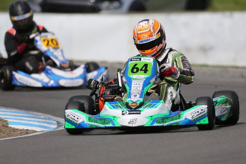In the other Junior age group class, Vortex ROK DVSJ, Hawkes Bay’s Tom Bewley overcame fastest qualifier and early leader Jay Urwin on lap 12 and went on to finish with a 1.194 second margin to Urwin. Canterbury’s Dylan Jessop was third.