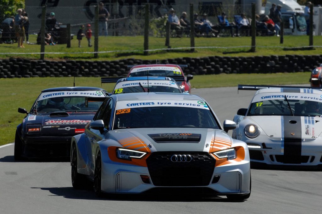 In Class B (2001-3500cc), four drivers have a mathematical chance of taking the title. Leading is Jordan Michels (Honda Civic FK7 TCR), 23-points in front of Dennis and Debbie Chapman (Audi RS3 LMS TCR), with Scott Milne (BMW Mini Challenge) 33-points further back. If all three faltered, Robert Gjaja (Lotus Exige turbo/Integra 2.4) has a mathematical chance at 60-points off the lead.