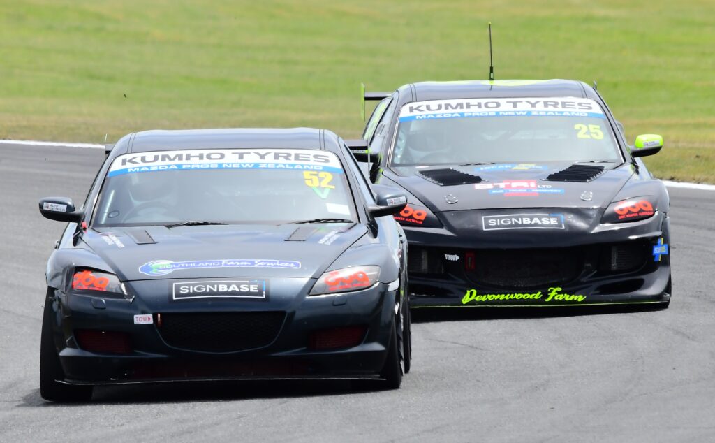The Mazda Pro8 New Zealand series acknowledges the support from Kumho Tyres, Disc Brakes Australia, HM Auto Electrical, Silvester V8 Performance, Sign Base.