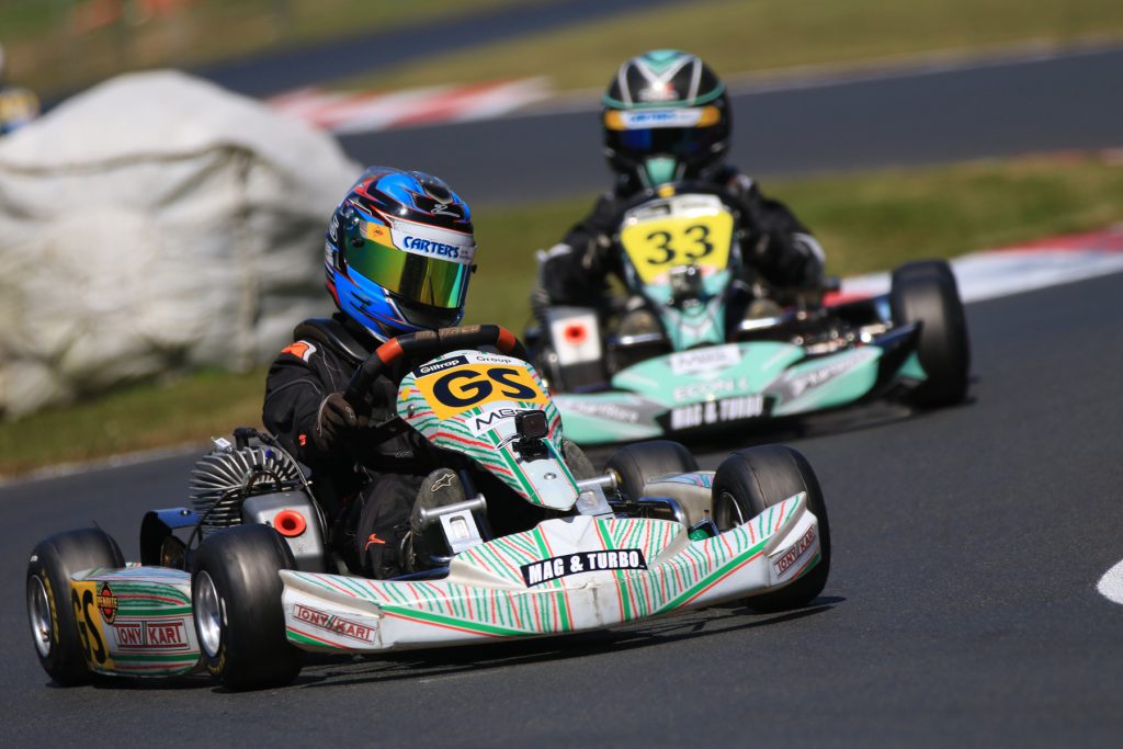 Marco Giltrap came good on the promise he has been showing all year by qualifying quickest and swapping heat and Pre-Final wins with established class pace-setters Caleb Hartley and Darren Walker before driving away to win the Final and with it the 2019 North Island 125c Rotax Max Heavy title.