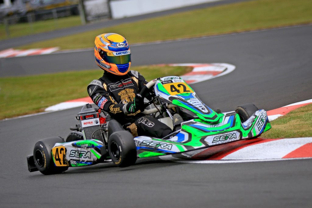 Both qualified quickest, won each class race they contested (Exton now in Seniors and running in 125cc Rotax Max Light) and set new class lap records, Black in the second ‘Heavy heat on Saturday, Exton in his Pre-Final on Sunday.