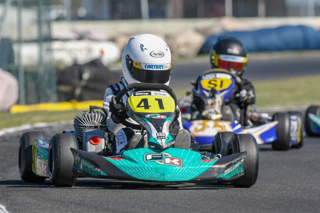Though several drivers are running in both the Rotax Max Junior and Vortex ROK DVS Junior classes it is hard to look beyond Christchurch-based international Jacob Douglas in either class.