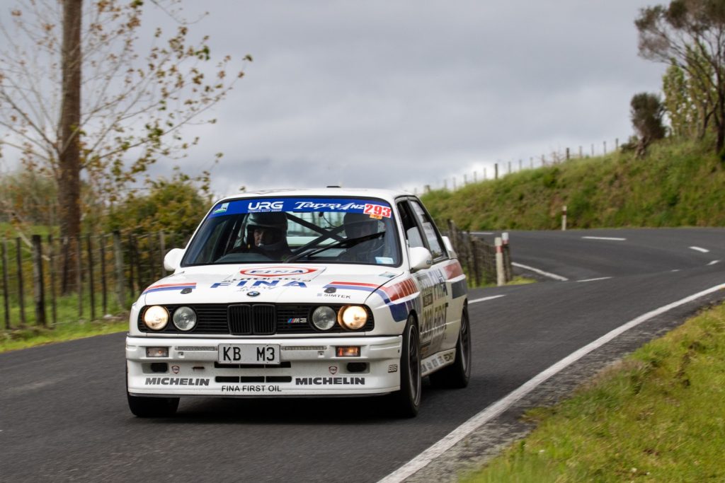 Also on his way back up the time sheets after an issue on the first day is the earlier model (E30) BMW M3 of Wellington pair Mark and his father Chris Kirk-Burnnand.