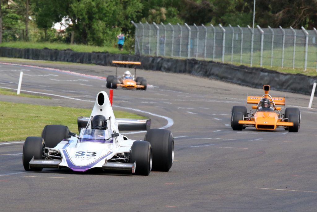 Collins also won Sunday’s 10-lap feature final in the afternoon though with Kevin Ingram out with a gearbox issue on the first lap competition this time came from Race 2 winner Shayne Windelburn (Lola T400) from Auckland.
