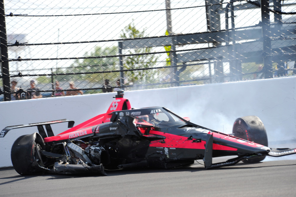 Sato and Dixon were locked in a stirring duel when Pigot crashed hard in Turn 4 at the end of Lap 195 as the leaders had started Lap 196, spinning and making contact with the SAFER Barrier on the outside and then slamming into the protective tire barrier at the head of the pit wall with the side of his No. 45 Hy-Vee/Embrace Pittsburgh Honda. Pigot was awake and alert and transported to Methodist Hospital in Indianapolis for further evaluation.