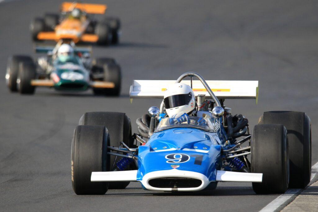 Fourth, after grabbing an early lead off fellow front row starter Toby Annabell (McLaren M10B) on the first lap then hanging onto it tenaciously for the next four (laps) was category new face, Alastair Chalmers (Chevron B32).