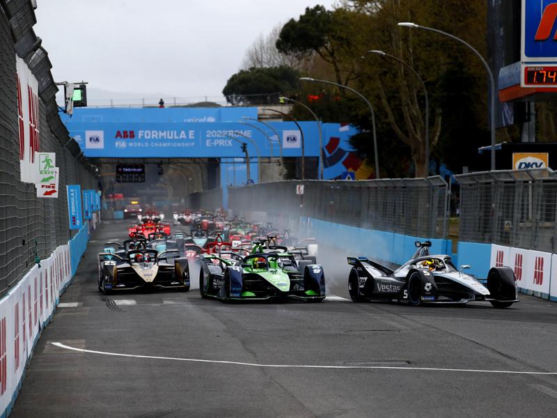 Poleman Stoffel Vandoorne (Mercedes-EQ) held onto the lead, fending off Envision Racing’s Robin Frijns in P2 as the pack moved around the 19-turn, 3.385km Circuito Cittadino dell’EUR street circuit in Rome.