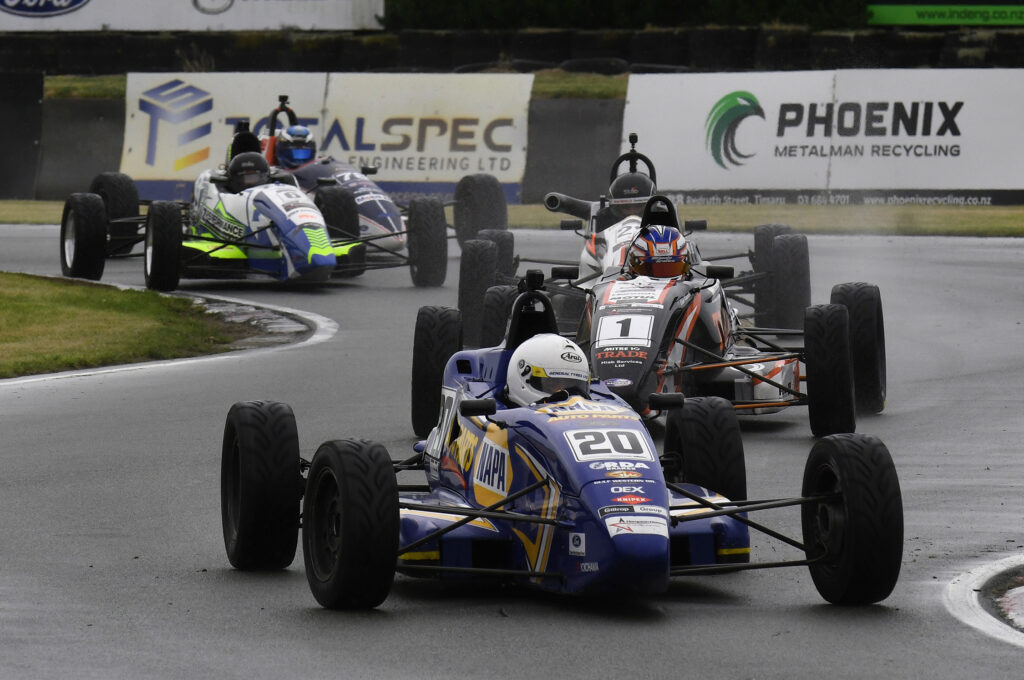 Second in the championship is Auckland’s Dylan Grant (Van Diemen RF03) who won the opening race of the season. Grant’s top five results in four races at Timaru has him 24-points behind Dowdall with Christchurch’s Will Neal (Van Diemen RF94) just three-points further back.