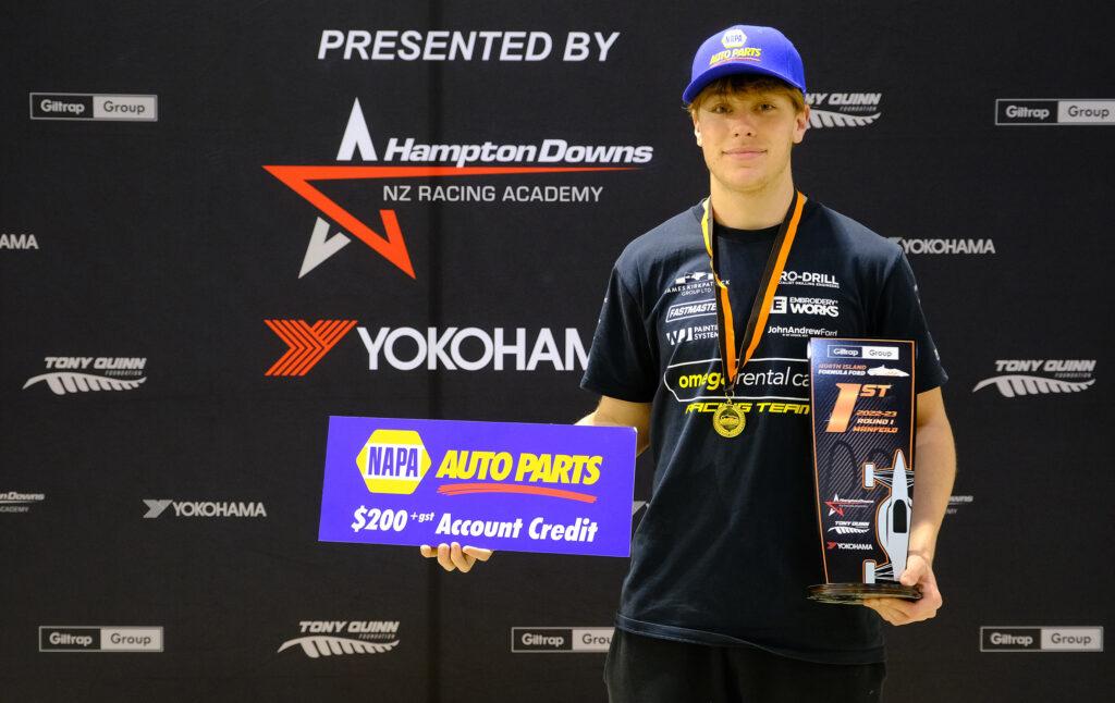 The award is part of the increased $66,000 prize pool from the Tony Quinn Foundation with funding for travel and testing opportunities with TOYOTA GAZOO Racing NZ. Qualifying and the first 10-lap race take place on Saturday with another 10-lap and a 12-lap race on Sunday. The Giltrap Group North Island Formula Ford Series is also supported by Yokohama, the Tony Quinn Foundation and NAPA Auto Parts.