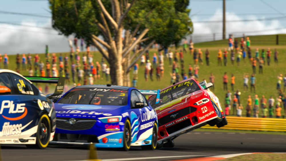 Because motorsport is the only sport where the virtual world translates very, very similarly to the real one (you can’t virtually kick a soccer ball, but you can virtually lap Bathurst with a steering wheel and pedals) it translates brilliantly to TV.