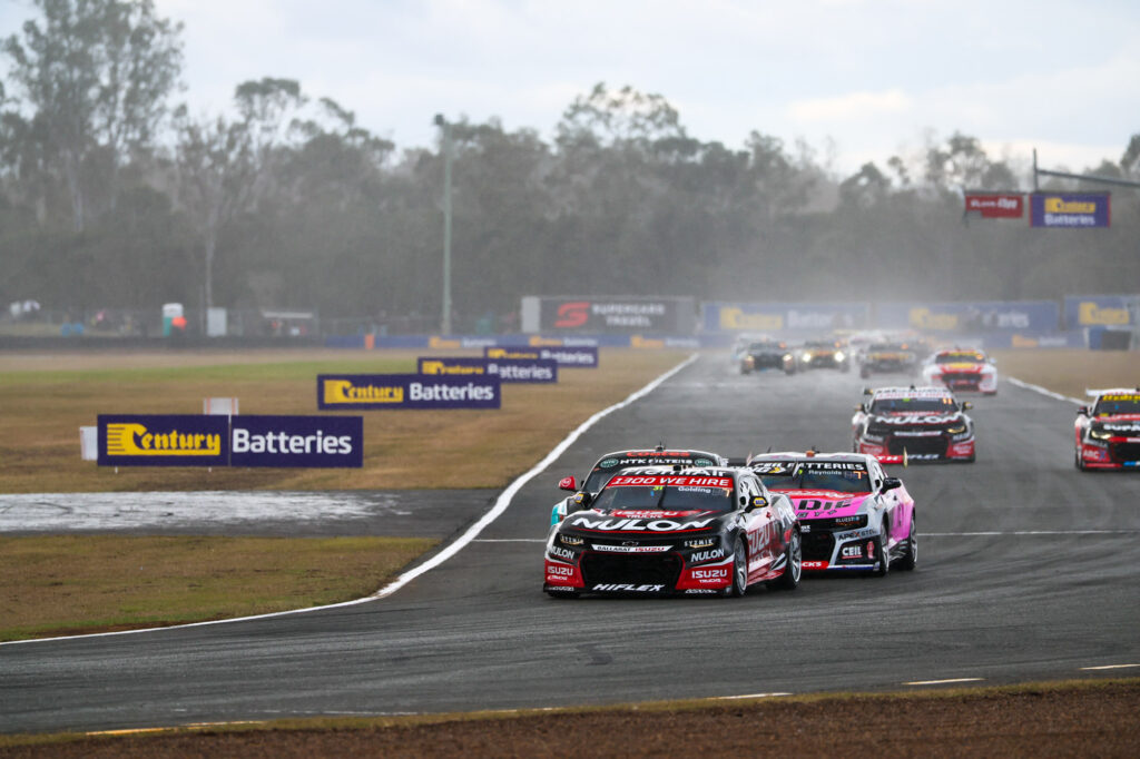 This ultimately paid off, as by that time, wets were no longer required, with the rain dissipating and the track drying out – however the previous laps on slicks in wet conditions certainly required all the concentration possible from both drivers, who held on as best they could.