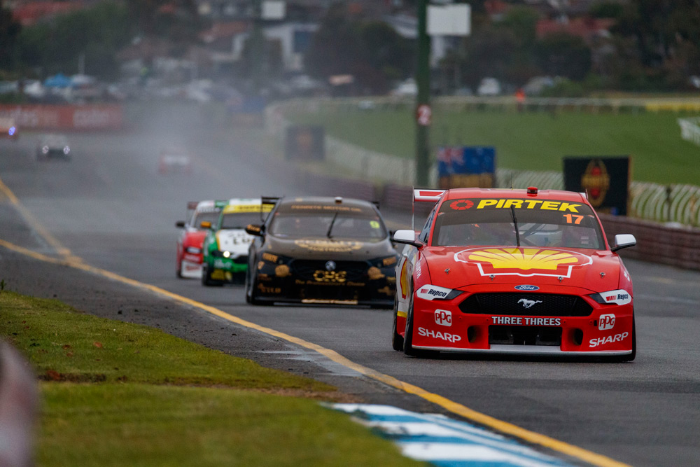 With McLaughlin’s championship rival Shane van Gisbergen crashing out early, McLaughlin took no risks and finished a strong fifth despite battling over-pressured wet tyres as the track dried.